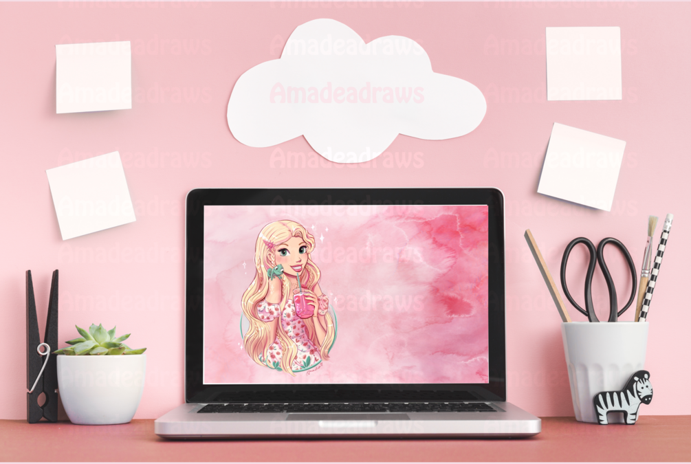 Three Princesses with drinks and casual outfits wallpaper/ background for Desktop Computer, perfect for any Disney fans who want to add a little magic to their everyday lives. Perfect to set home. Three files with each Princess included.